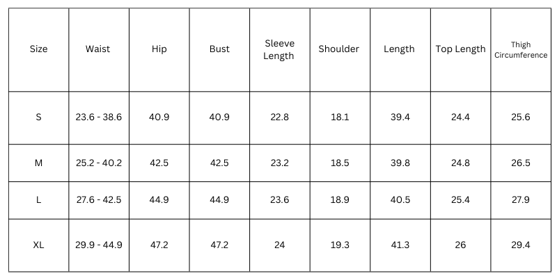 Size Chart (inches):
