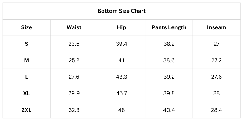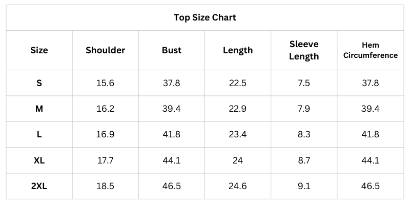 Size Chart (Inches):