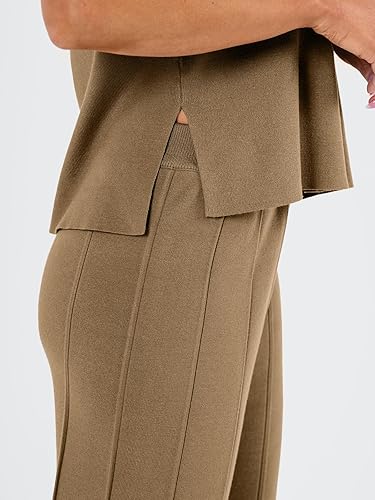 The Women’s Knit Lounge Set combines comfort, versatility and modern design in one coordinated outfit. The top’s high-low silhouette and side slits give it a polished yet laid-back appearance, making it suitable for many environments. The pleated wide shank pants create a flowing shape that pairs well with both casual and elevated footwear.