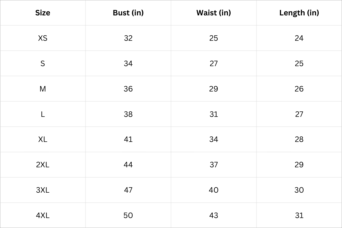 Top Size Chart (Inches):