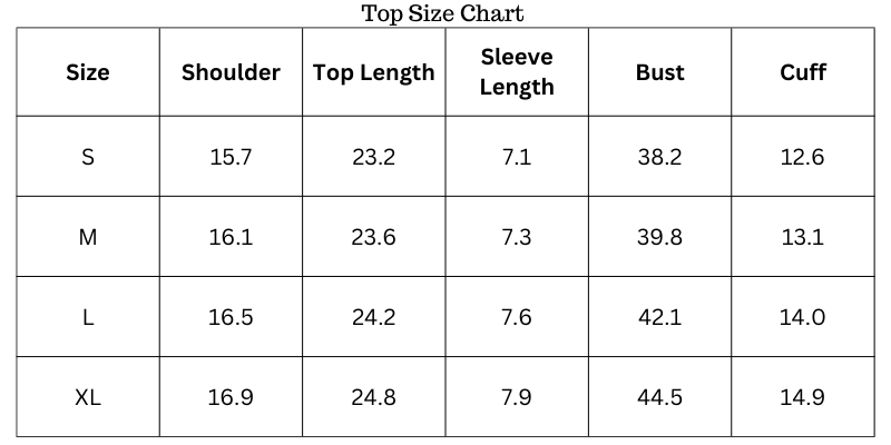 Size Chart(inches):