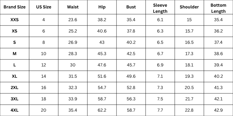Size Chart (Inches):