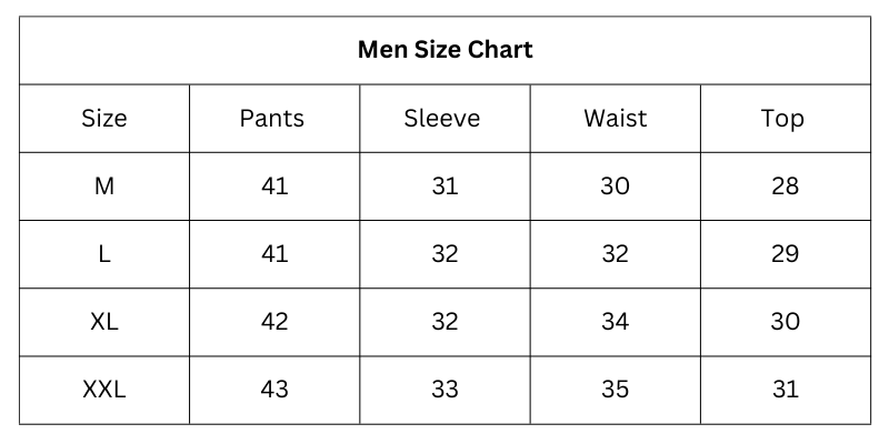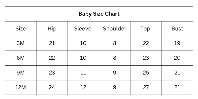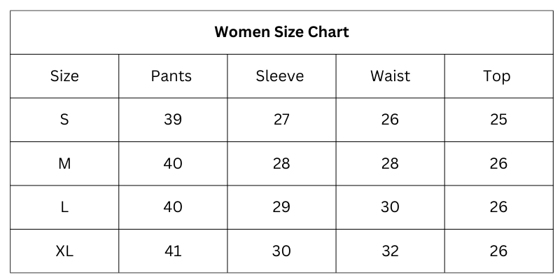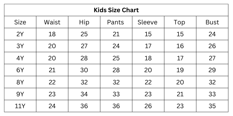 Size Chart (inches):