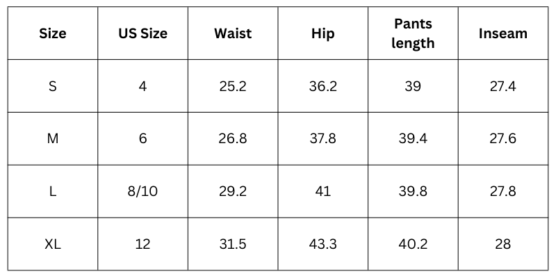 Bottom Size Chart (Inches):