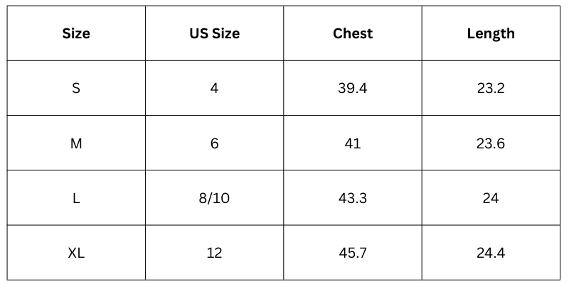 Top Size Chart (Inches):