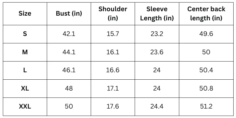 Size Chart (Inches):