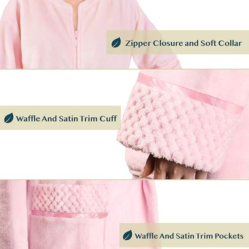 Why Choose This Cozy Zip-Up Front Bathrobe With Soft Fleece For Women?