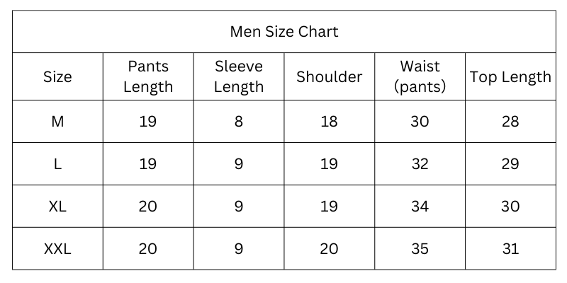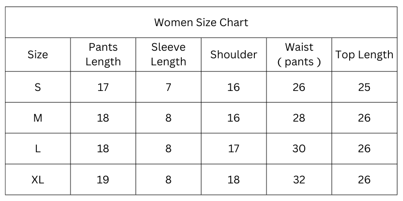 Sizing charts provided for reference if needed. Measurements align with most everyday loungewear.