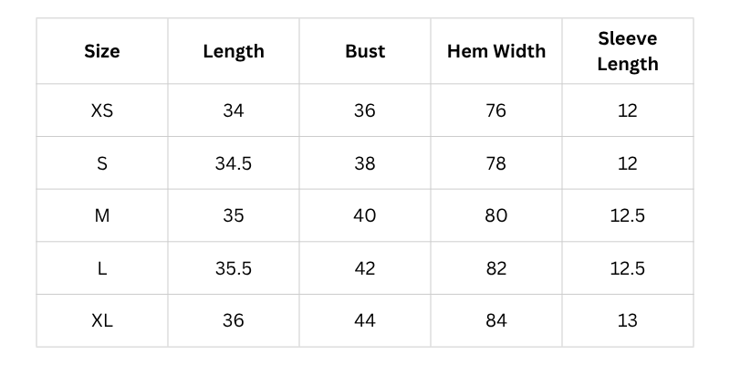 Size Chart(inches):