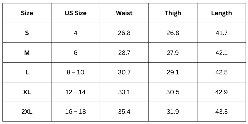 Size Chart (Inches):