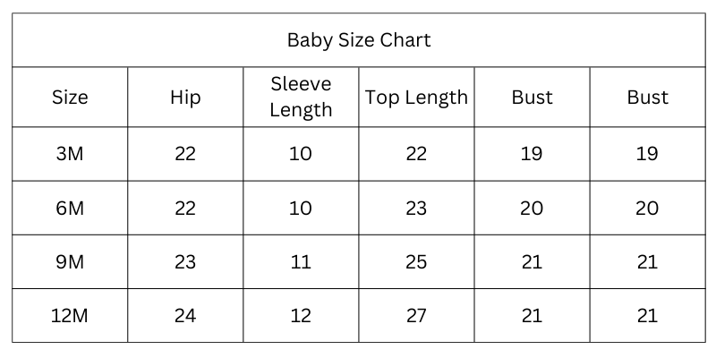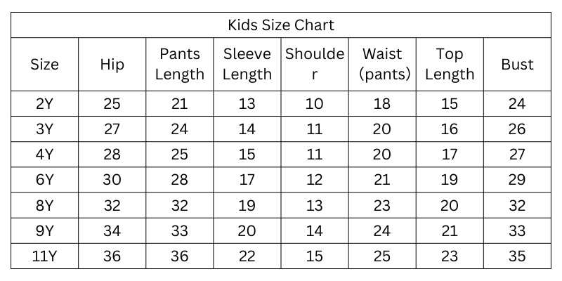 Size Chart (Inches):