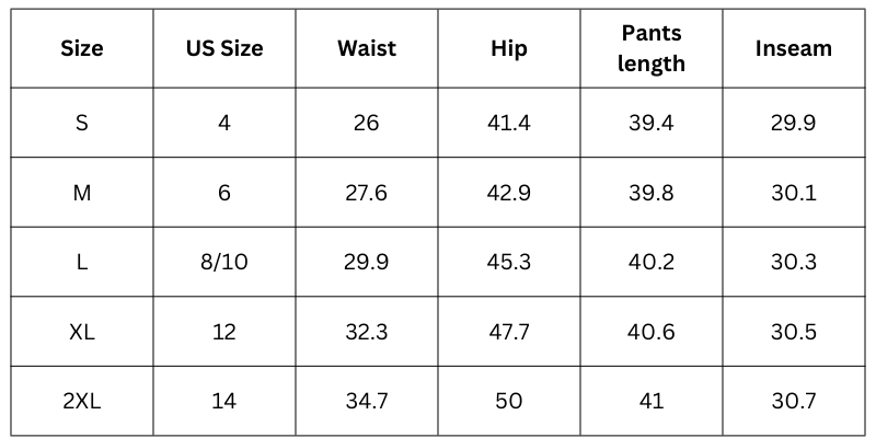 Size Chart(inch):