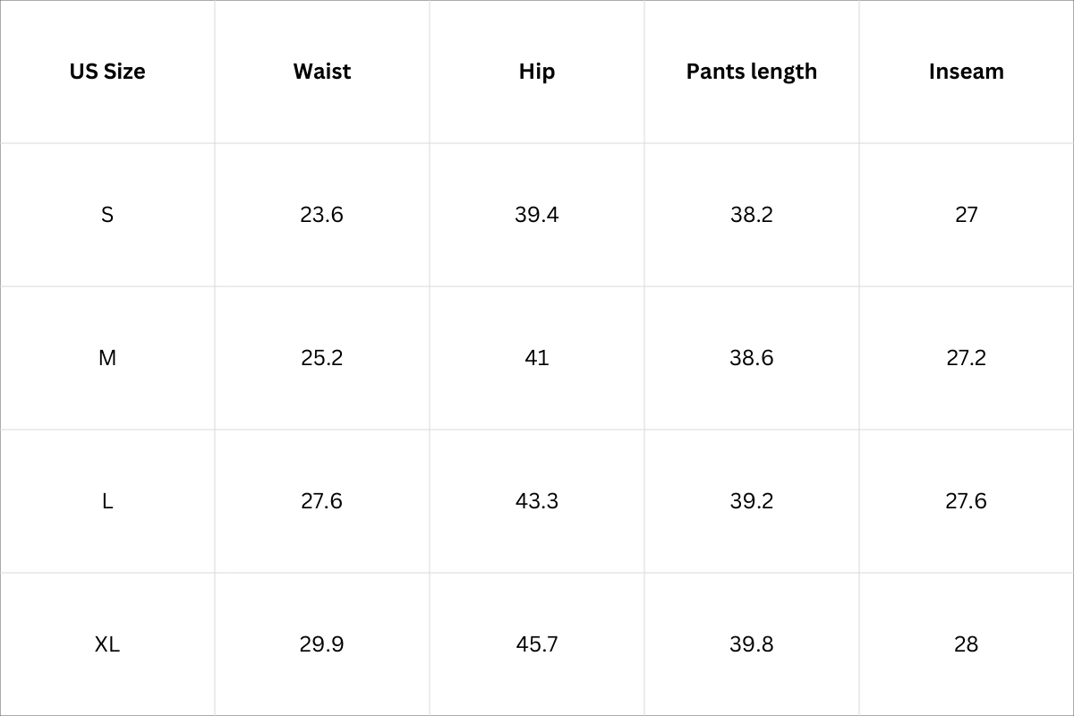 Bottom Size Chart (Inches):