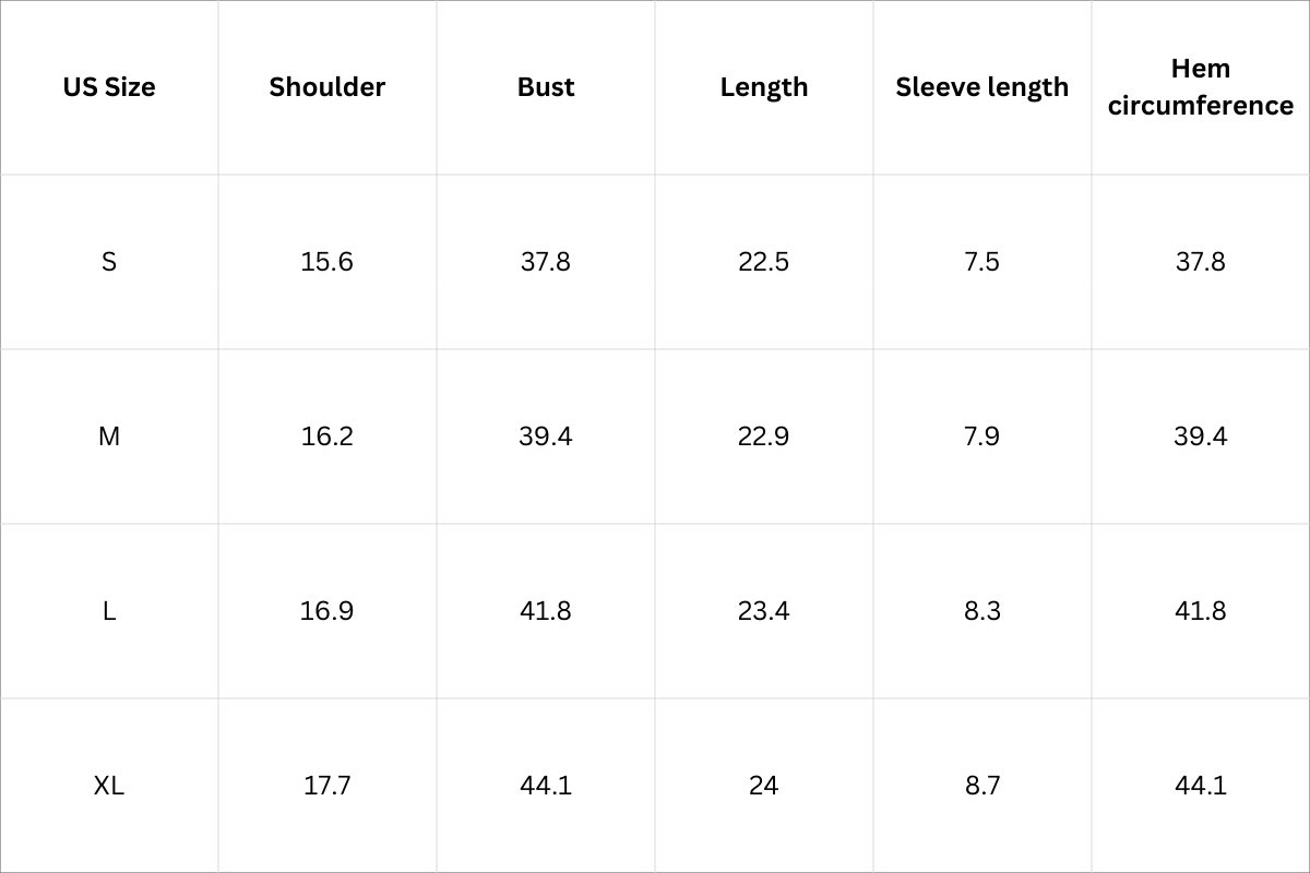 Top Size Chart (Inches):