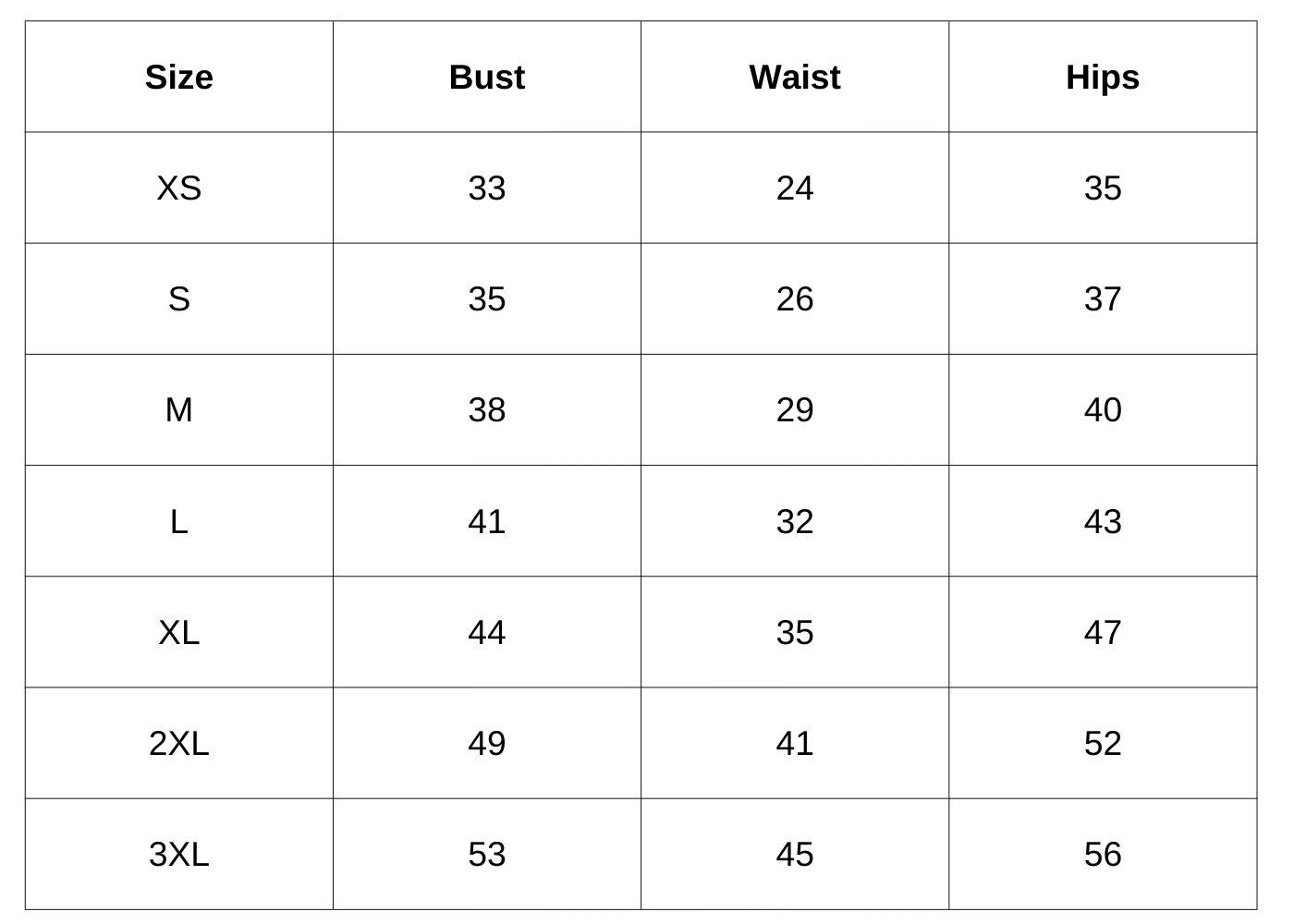 Women's Size Chart (Inches):