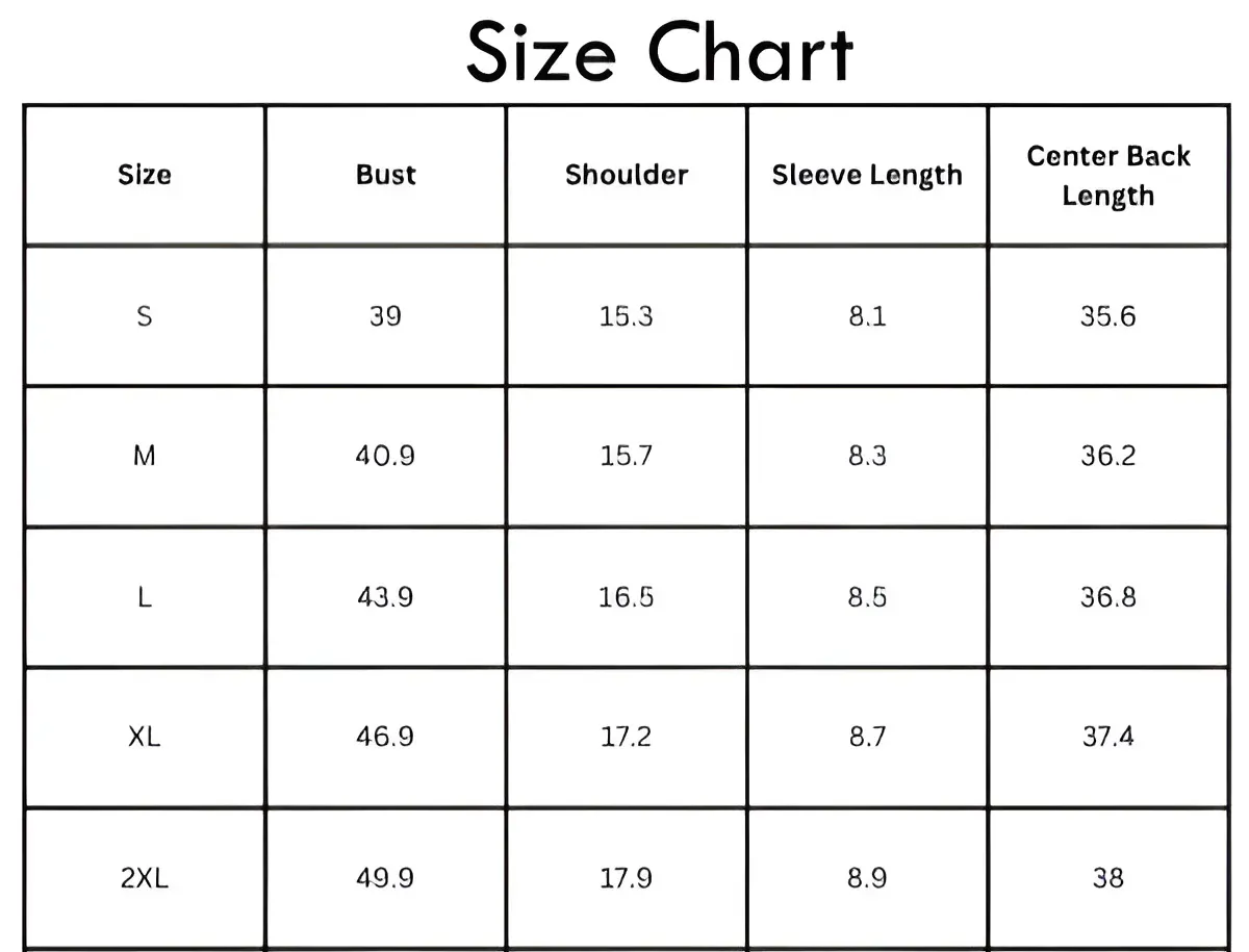 Size Chart (inches):