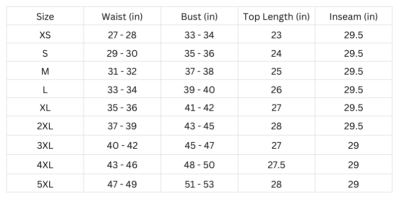 Size Chart (Inches):