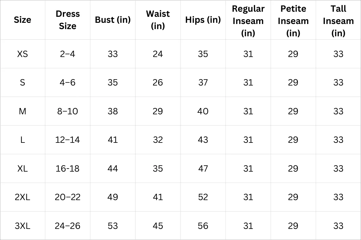 Women Size Chart (Inches):