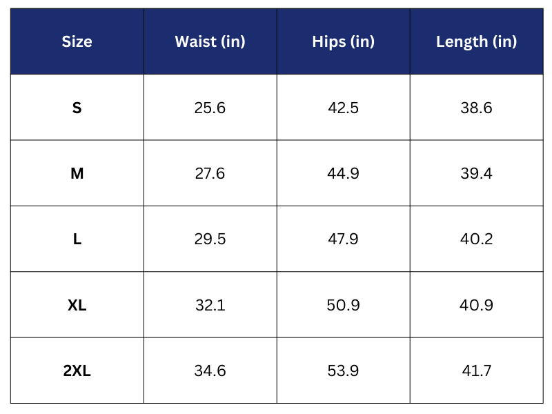Size Chart (Inches):