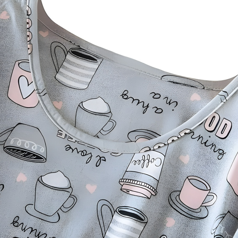 The loose-fit sleep dress adapts well to different mass shapes. Its printed design adds visual interest without overpowering the overall look. This nightgown suits everyday routines such as resting, reading, or spending time indoors.