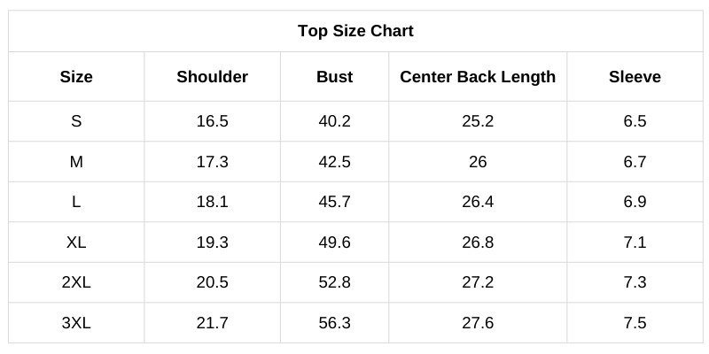 Size Chart (Inches):