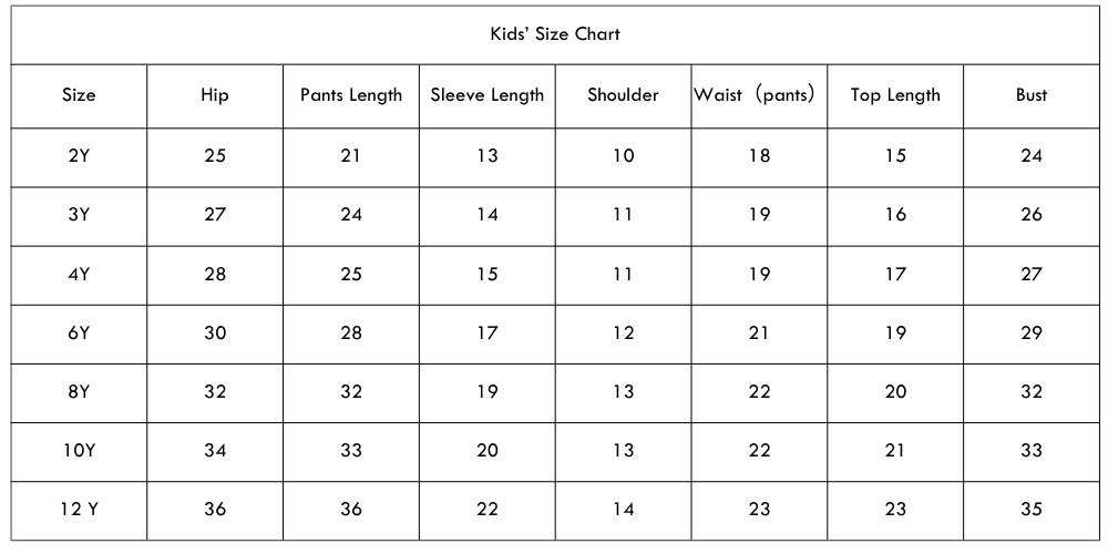 Size Chart(inches):