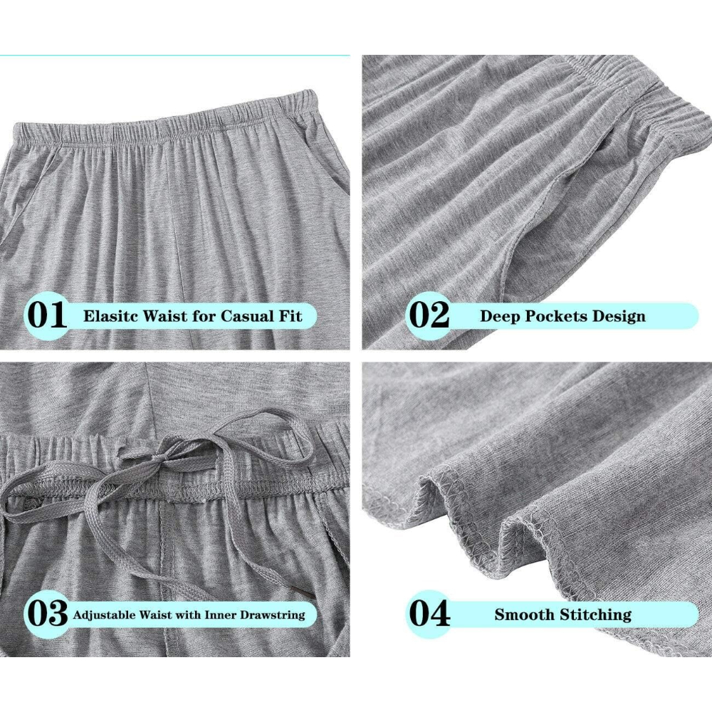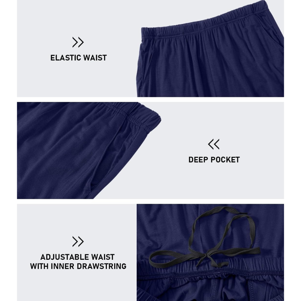 Soft Modal Sleep Pants are built for people who want a pull-on pajama bottom with practical features that fit into daily schedules. The elastic band and inner drawstring allow easy fit adjustment, helping the pants stay comfortable during extended wear at home. Two side pockets add convenience for small essentials used during home routines, such as keys, a phone, or small accessories. The knit design supports easy movement for everyday activities like working from home, preparing meals, reading, or casual indoor tasks.