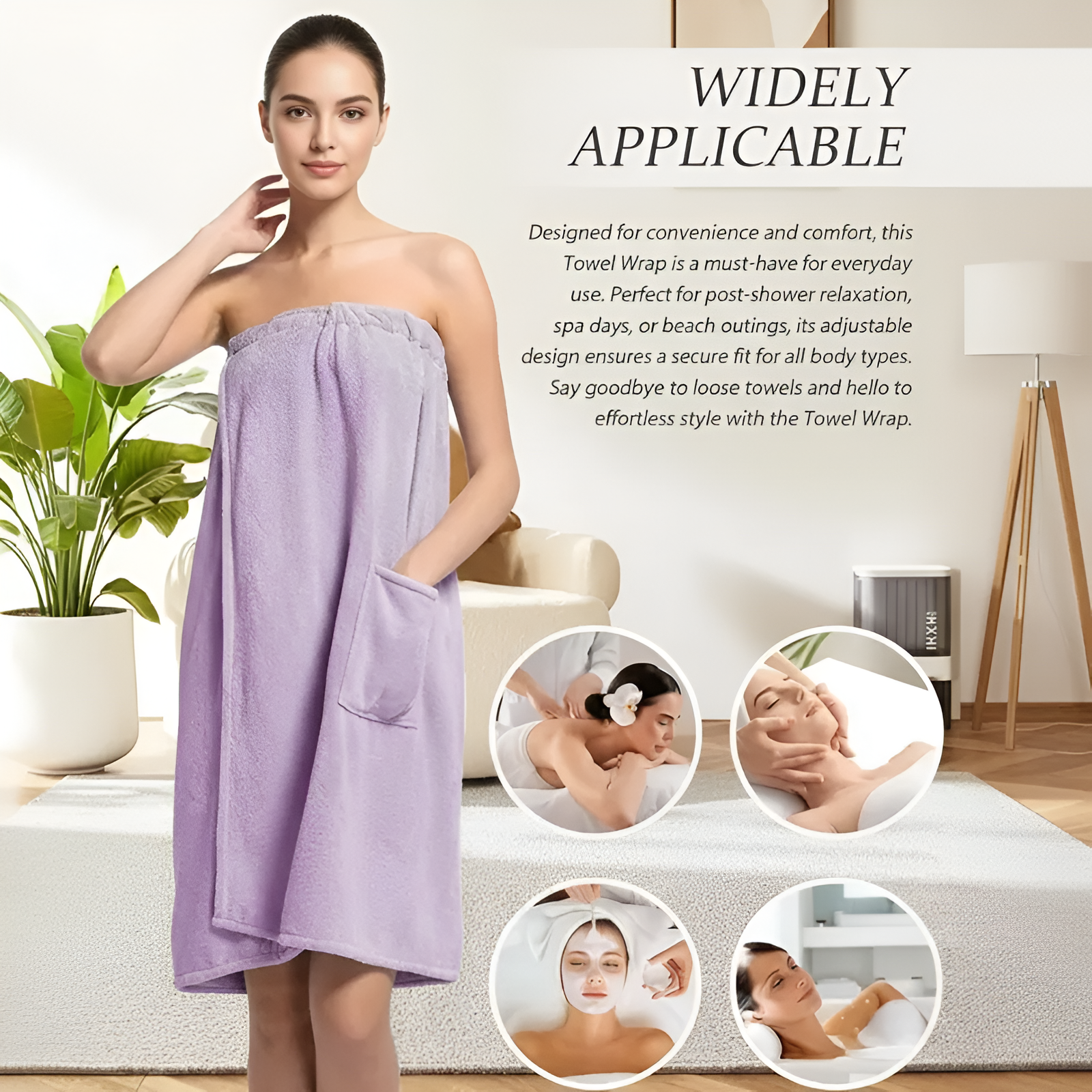 - Practical Design: Featuring an adjustable closure and roomy pockets, this wrap towel offers both functionality and style. The closure ensures it stays in place, while the pockets allow you to store your small essentials with ease.