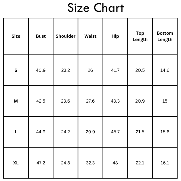 - Fit: Loose top and high-waisted shorts with elastic waistband