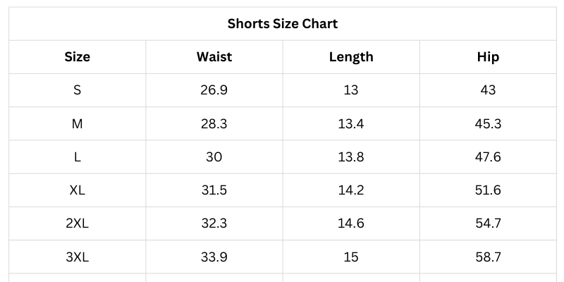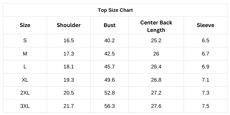 Size Chart (Inches):