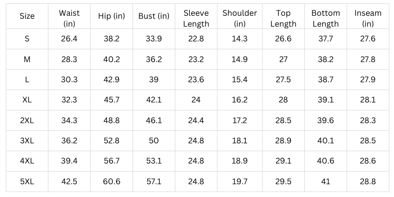 Size Chart (Inches):