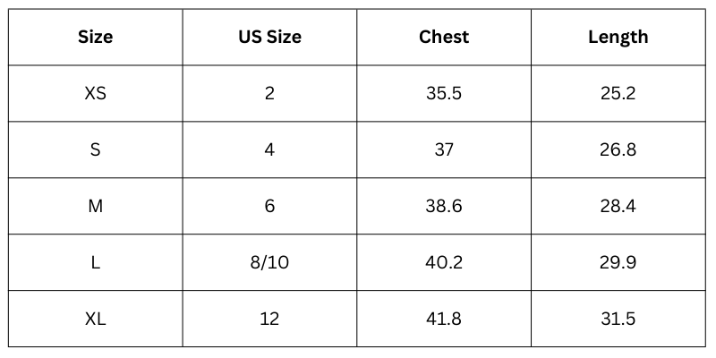 Size Chart(inch):